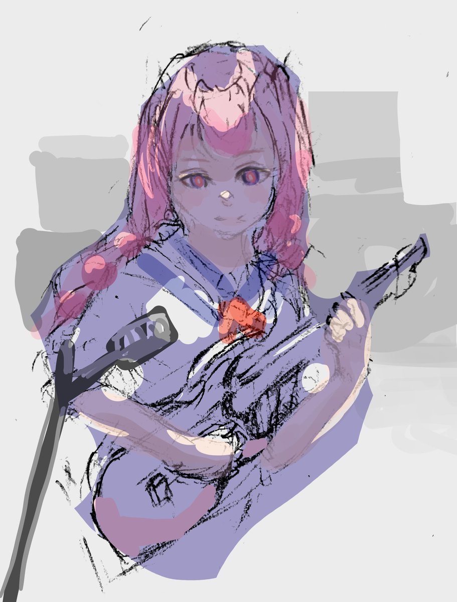 (ラフ) 次、花譜描きたいんだ〜!えっ、これが花譜?(否めない) #イラスト好きな人と繋がりたい #イラスト練習中 #絵師さんと繋がりたい #花譜 #花譜美術部 #イラスト #アートミーム #ギター