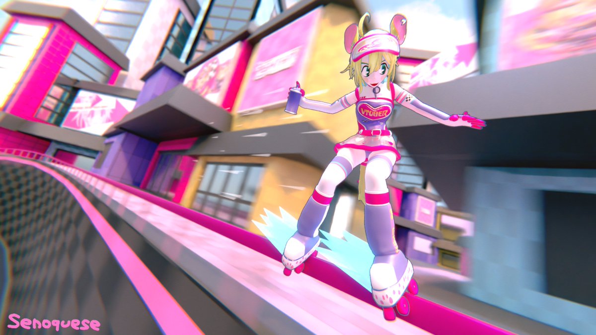 3d ashton wallpaper thing! shes doing jet set radio things like grinding on rails and holding spray cans (ive never watched or played jsr im sorry) #AshtonARTen