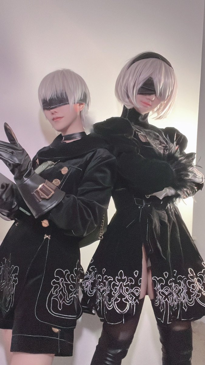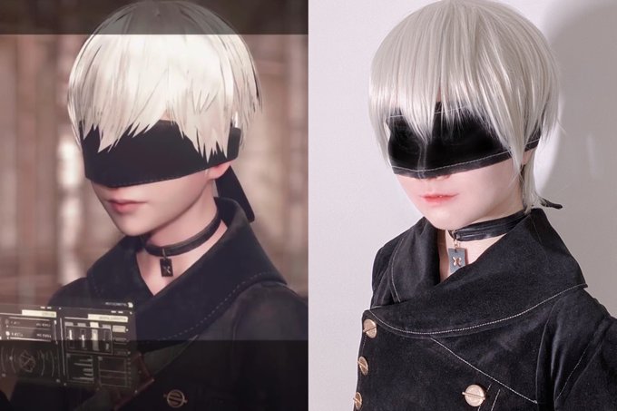 おはようございます!!ヽ(`・ω・´)ノ 貴方のサポートをするように指令を受けています!(╹◡╹) #Cosplay #コスプレ #9S #ニーアオートマタ #ニーア #NieRAutomata #原作の隣に自分のコスを貼る