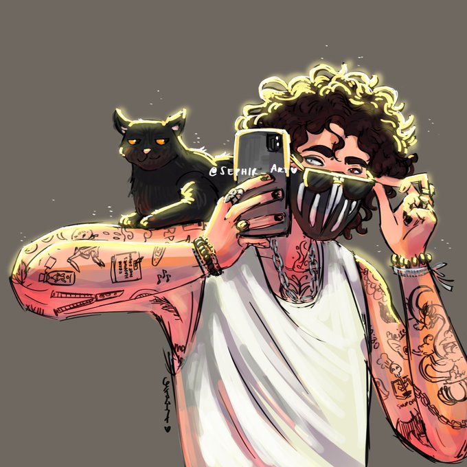 Don't be shy, say hi back😆 How many tattoos does he have? {check people tagged cause they're awesome! 💗 Also, tomorrow is OC art day!} @CORPSE @Corpse_Husband #CORPSE #corpsehusbandfanart #corpsehusband #corpsetwt #ctwt #tattoos #tattoo #artist #arte #art #artshare #artmoots