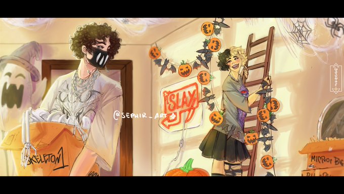 Halloween prep with @Corpse_Husband and @emmalangevin 🎃🦇 What's your costume this year? {shoutouts below!} @CORPSE @EMMAUNHINGED #corpsehusbandfanart #corpsehusband #corpsetwt #ctwt #emmalangevin #emmafanart #toothtwt #Halloween #HalloweenCostumes #arte #commissions