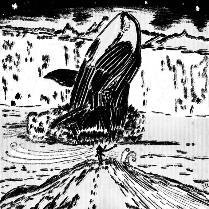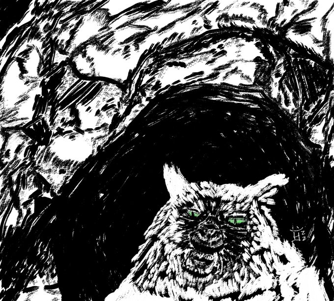Gmork of Fantasia, Servant of the Nothing, B&W (and a dash of green) brush pens. #NeverEndingStory #fantasy #art #Inktober #inktober2022