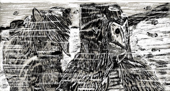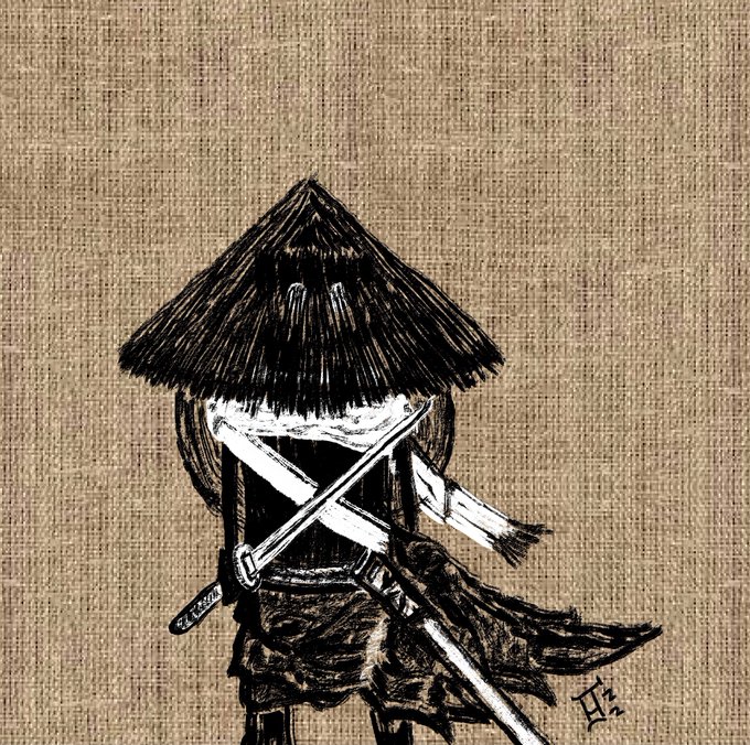 Experimenting with using different textures as digital canvas; sketch, B&W brush pens on burlap #art #Inktober #inktober2022