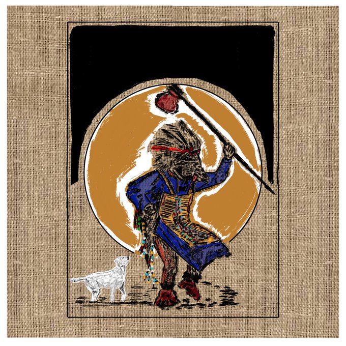 Started a project with the wife about which I’m really excited; almost done with step one, brush pens on burlap #WIP #art #Inktober #inktober2022 #indigenous #TAIRP