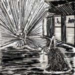 Cthulhu’s Witness, Door-to-Door Shoggoth, brush pens on newsprint #Lovecraft #shoggoth #art #Inktober #inktober2022