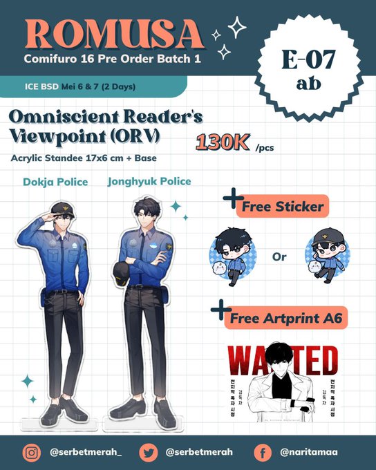 👮♂️OPEN PRE-ORDER CF16 STANDEE ORV👮♂️ Shares are very appreciated🫶🏻 📍Circle ROMUSA E-07 AB 📆 17 - 24 March 2023 🛍️ Pick up both days/Mail order 🔗 bit.ly/POCF16AcrylicS… #comifuro #comifuro16 #omniscientreadersviewpoint
