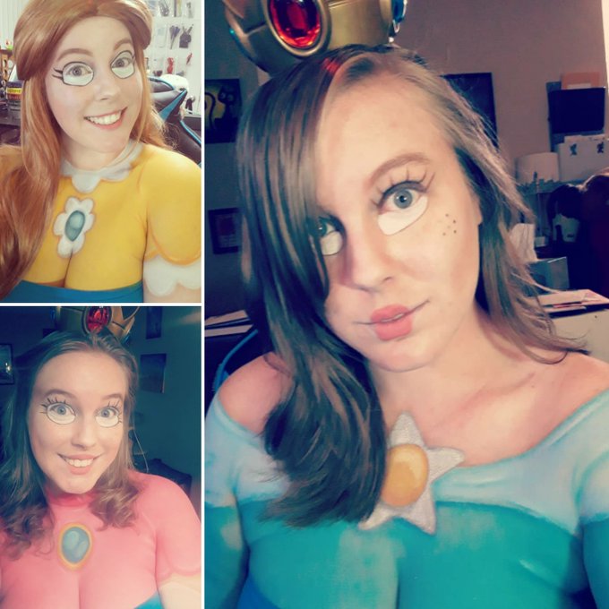 I body painted all the ladies of Mario! Peach, Daisy and Rosalina. #makeup #makeupartist #bodypaint #mua #cosplay #cosplayer #mario #nintendo #princesspeach #princessdaisy #rosalina