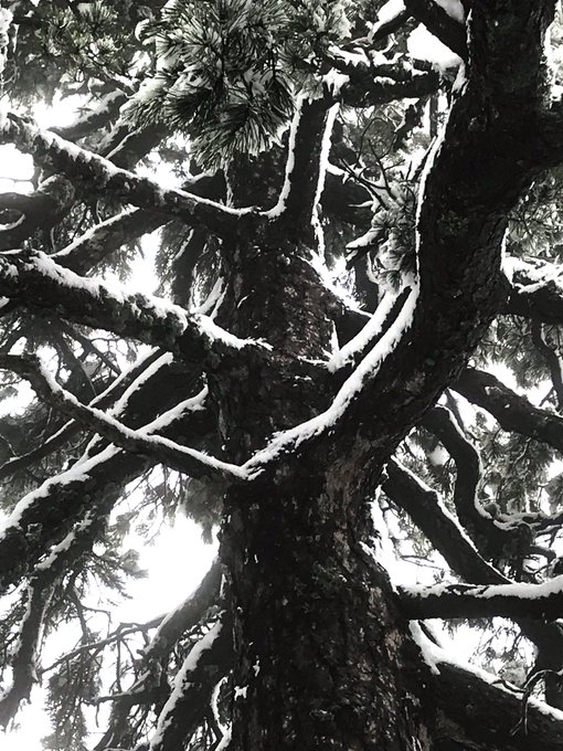 Check out the drama unfolding on this trunk. How the dark shades brighten the snow creating a dialogue that can only be observed and translated in art. Good morning 🚀🌈 my dear trunks!! #nftartworld #NFTCommunity