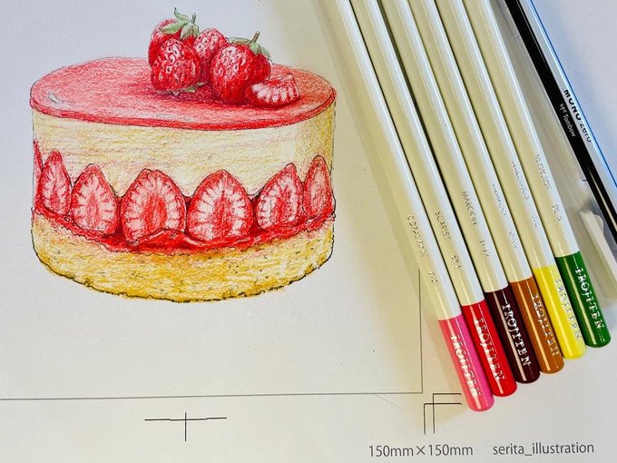 イチゴのカップケーキを描きました。大人の塗り絵や色鉛筆画にご利用ください😊 下絵の無料ダウンロードはブログより→serita-illustration.com/coloriage_swee… #色鉛筆イラスト #色辞典 #大人の塗り絵 #色鉛筆 #tombowfunart