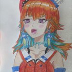 #ArtsOfAshes #inART #callillust #gawrt #ameliaRT #HololiveEN #holoMyth Always thought the Walfie models would be great for stained glass with their simple shapes and thick outlines. Welcome to the Monument of Myth. Colored pencil on bristol paper.