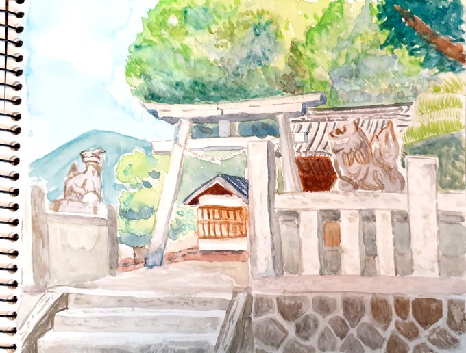 実家近くの神社写生〜 #水彩画 #透明水彩