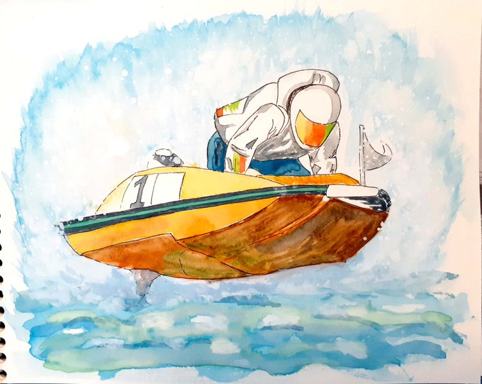 3周目2マーク、トップクリアは…! #ボートレース #水彩画