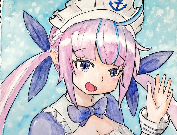 1 2 こんあくあ〜 #あくあーと #湊あくあ #水彩画 23/04/09 09:57