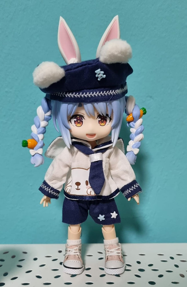 数日前にぺこちゃんのねんどろいどが届いたので、今日の配信で可愛い服を着せていただきました! 超かわいいでしょう?! #ぺこらーと