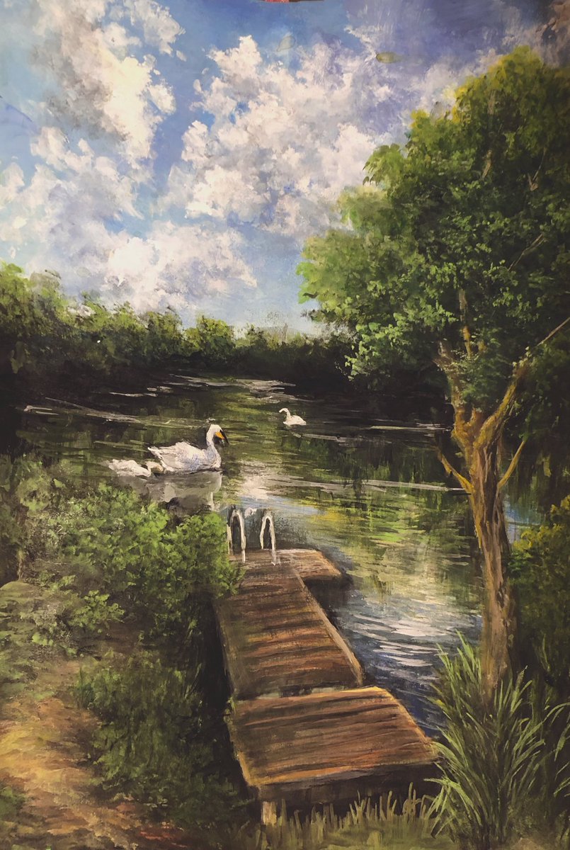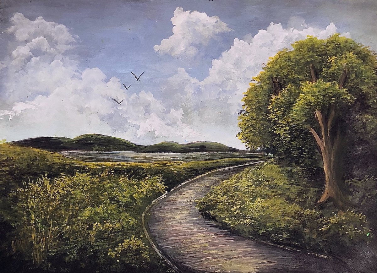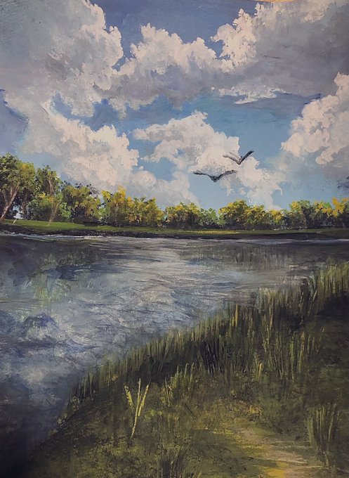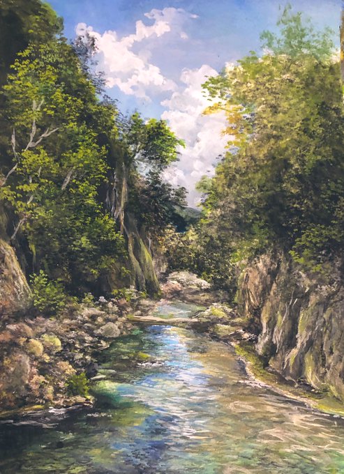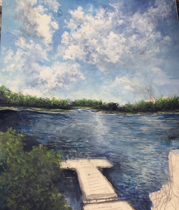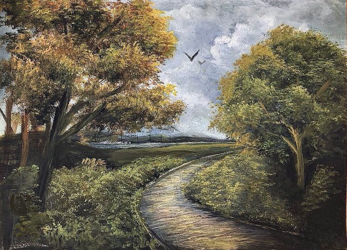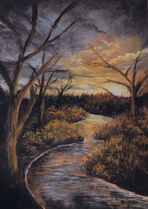 #12月になったのでフォロワーさんにもFF外にも自己紹介しようぜ #絵描きさんと繋がりたい アクリル画や鉛筆画を自己流に描いております。 自然な雰囲気を感じられる様な風景を描くことが目標です。 最近勉強忙しすぎて絵進められてません…😭すみません💦