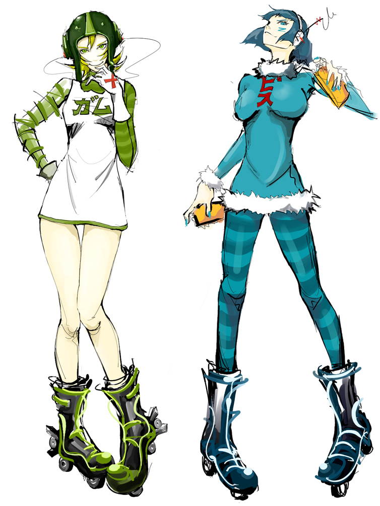Stylish skaters. Gum and Mew - Jet Set Radio Artwork by: ysqw_ | pixiv.net/artworks/37065… #SEGA