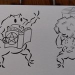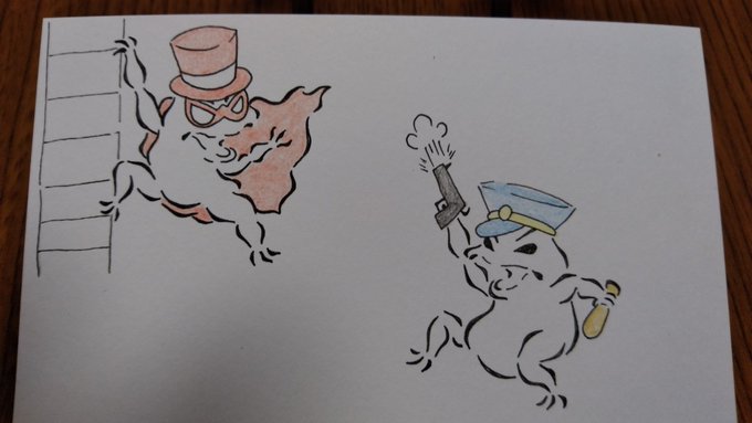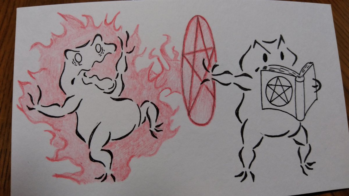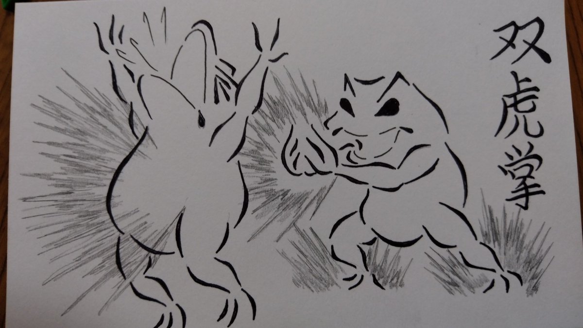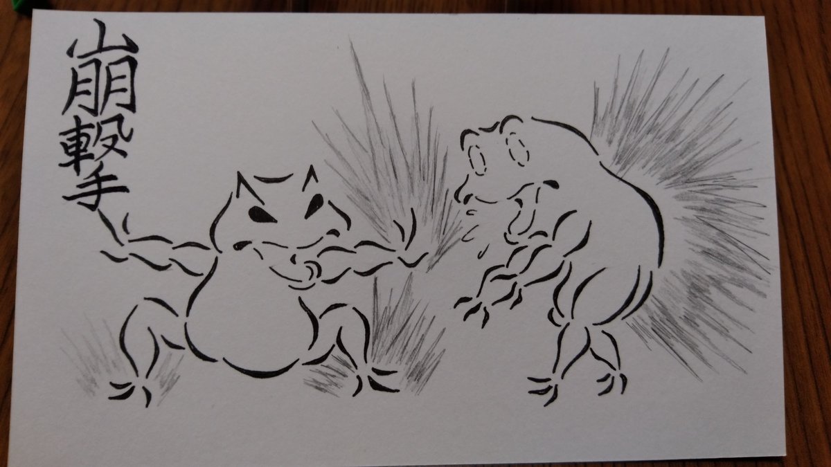 本日の格闘蛙。 最近よく『珍しいポケモンだーっ!』て言われながらボールをぶつけられる。 なんのことだか分からないけど、とりあえず廻し受けで払っとく。 #格闘蛙 #イラスト好きな人と繋がりたい #落書き好きさんと繋がりたい #イラスト #らくがき