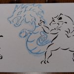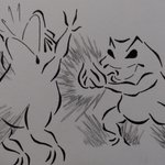 本日の格闘蛙。 『波動の勇者』って言われてるオオカミさんとバトル! はたして勝てるだろうか!? #格闘蛙 #イラスト #落書き好きさんと繋がりたい #イラスト好きな人と繋がりたい #ポケモン #ルカリオ