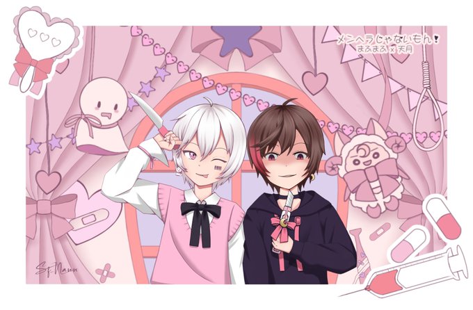 Last week I watched an MV and I thought, "Ahhh... this is so cuteee, I want to draw it!", then I got these two very cute and scary ppl XD メンヘラじゃないもん! #Mafumafu #まふまふ #まふあーと #Amatsuki #天月 #天月イラスト部 #mafutsuki #art #FANART #digitalart