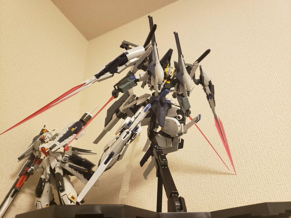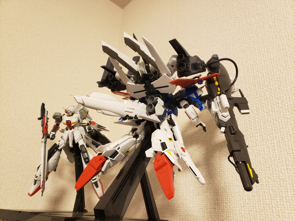 #私はここまで成長しました見た人も晒す 実は〜7年前にMGデルタプラスでオリジナルの可変機(デルタカイ風)でアンテナつけてファンネルつけるので精一杯だったのが 現在では、でかくなりました(笑)