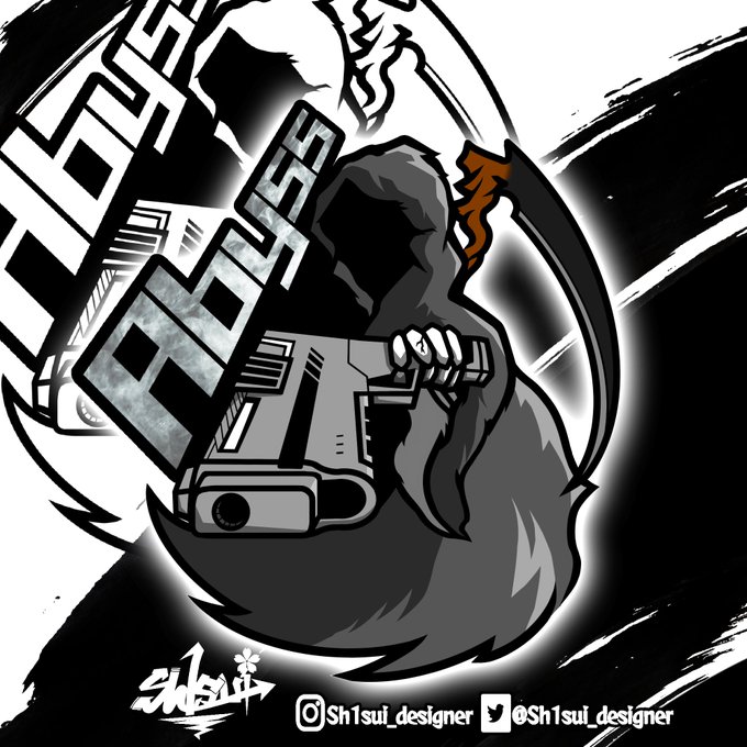 ❖Mascot logo❖ concept:銃+死神 text:Abyss Plz like&RT♡ #Sh1sui実績 #マスコットロゴ #Mascotlogo #キャラクターロゴ #クランアイコン #クラン #デザイン #イラスト #アイコン #依頼