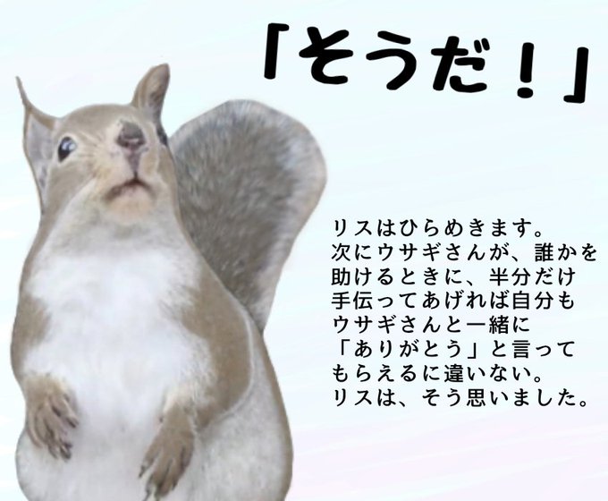 「わがままなウサギ」 35ページ目(全35ページ) #イラスト #アトリエの系譜 #イラスト好きさんと繋がりたい #マンガ #漫画 #漫画が読めるハッシュタグ #絵描きさんと繋がりたい #創作 #創作漫画 #拡散希望 #絵本 #ネザーランドドワーフ #うさぎ #リス #ニホンリス #写真が好きな人と繋がりたい