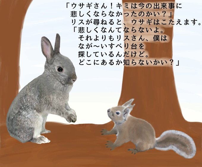「わがままなウサギ」 34ページ目(全35ページ) #イラスト #アトリエの系譜 #イラスト好きさんと繋がりたい #マンガ #漫画 #漫画が読めるハッシュタグ #絵描きさんと繋がりたい #創作 #創作漫画 #拡散希望 #絵本 #ネザーランドドワーフ #うさぎ #リス #ニホンリス #写真が好きな人と繋がりたい