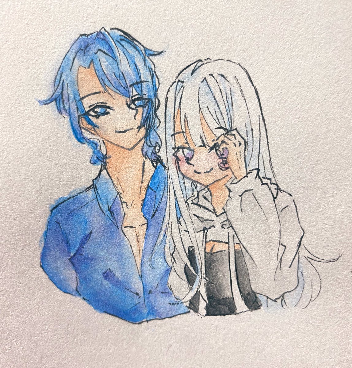 #塗鴉 #水彩画 顏色好好玩wwwwww 原本要記錄美好的線稿😌 結果突然發現好像很合(????? 完全意外wwwwww