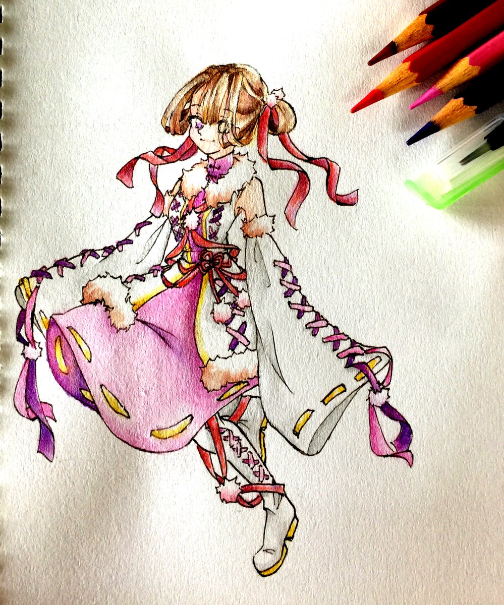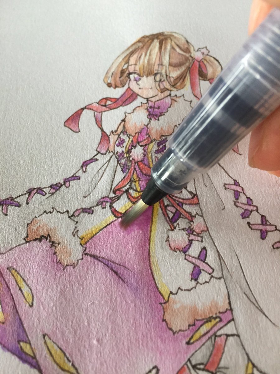 把以前ㄉ圖拿來上色🎨 好欸 我畫那個緞帶 畫到眼睛快脫窗:) #水彩画 #水彩