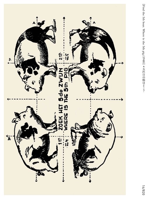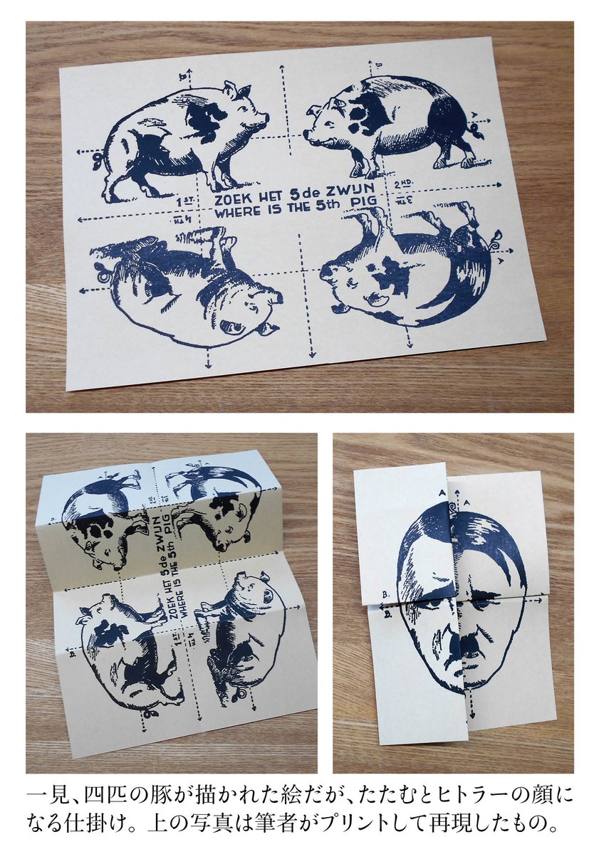(੭∴ω∴)੭ 五匹目の豚ちゃんはどこ? 説明写真のように折り曲げると、あら不思議、何かが現れますよー。 戦時下のポスター Amazon kindleストアで販売中!! amzn.to/3KxmV0v #電子書籍 #イラスト #戦争 #世界大戦 #ヒトラー #ナチス #独裁者