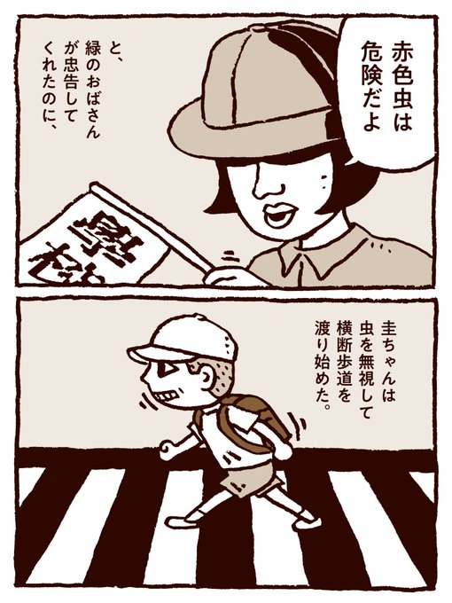 (੭∴ω∴)੭ ショートコミック「信号蟲」 これをお子さまに読み聞かせてくださーい、二度と信号無視をしなくなりますよー! note.com/tapirus_sha/n/… #イラスト #小説 #マンガ #漫画 #ショートショート #ホラー #信号無視