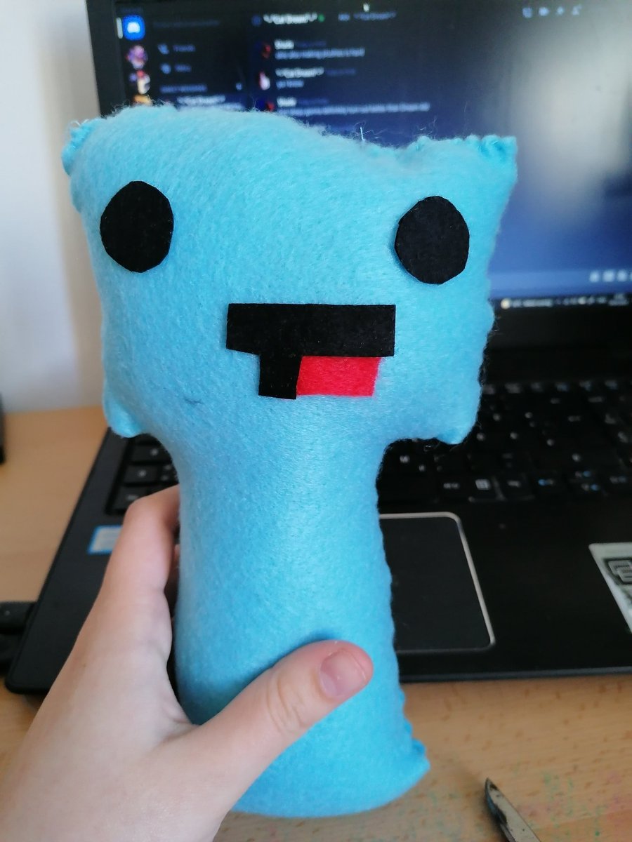 So a friend said this counts at fanart. It is a sown plushie though and I almost gave up when the thread snapped twice. Uh it's almost as big as my head. #SkeppyFanArt