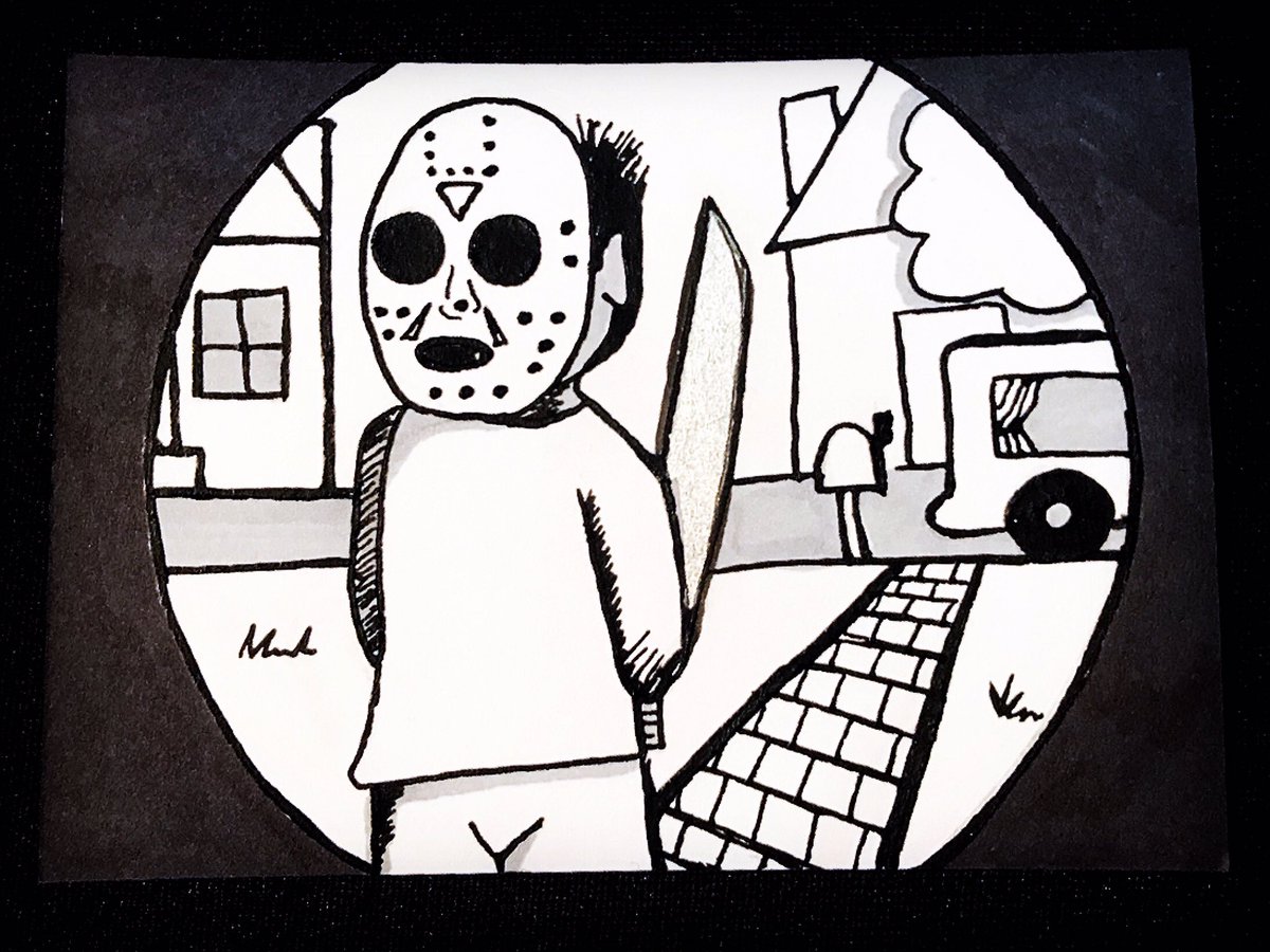 And we’re off! Day 1 - Ring Inktober #inktober #inktober2019 #ring #ringsecurity #jason #whosthere #halloween #halloweendrawing #halloween2019 #art #artist #doodle #markerart #markerartist