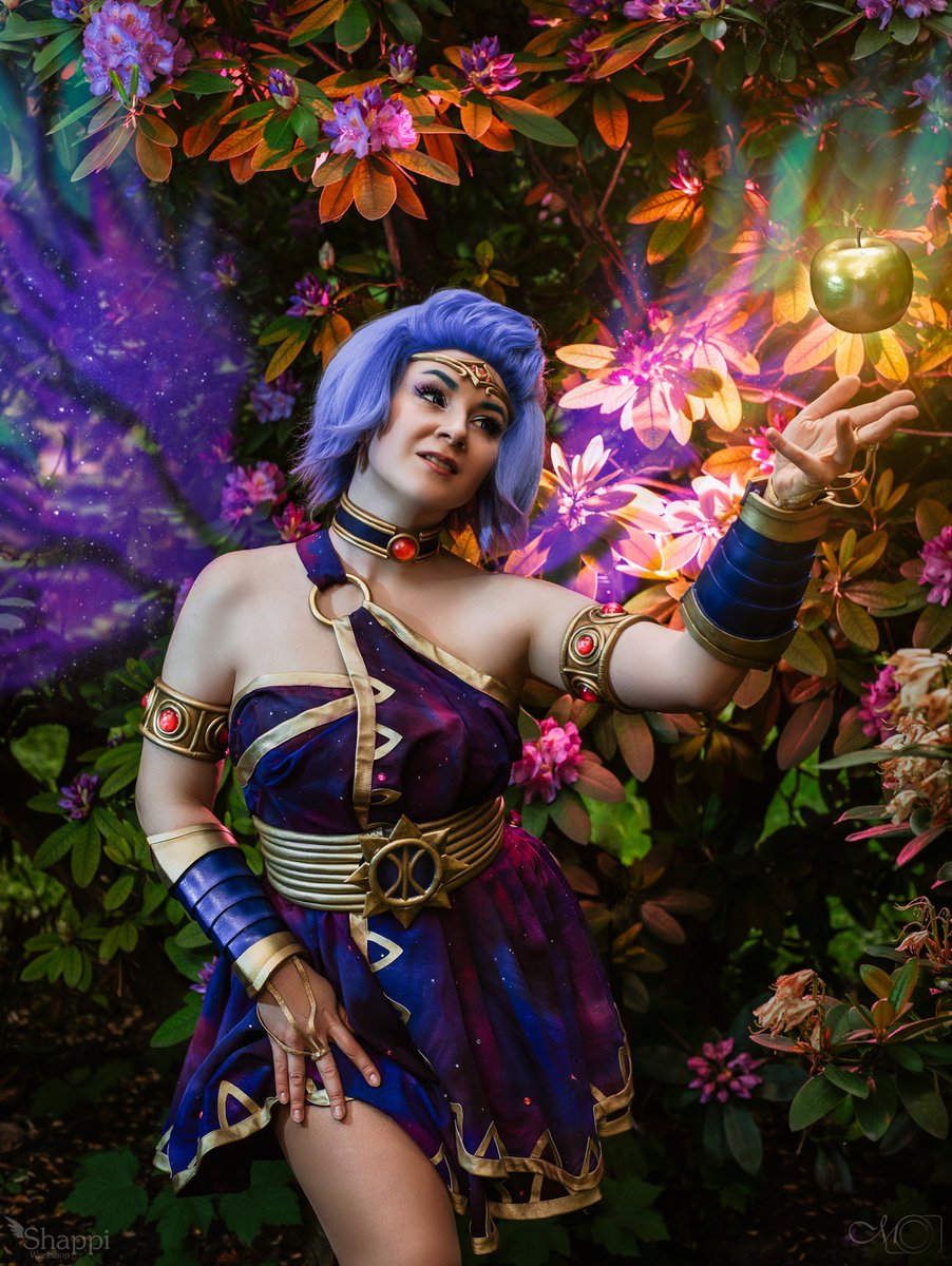 "To the fairest goes the torment!" Im so happy that i came back to this costume, shes one one of my favourite creations <3 Making this galaxy pattern on the dress was so fun! Myself as Discordia from @SMITEGame @HiRezStudios Photo by Miszka_photo (IG) #Smite #cosplayergirl