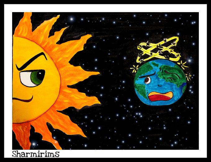 "Are you done heating up???" @inktober #Day19 #Prompt: #Dizzy #inktober2020 #inktoberprompts #drawing #mimic #cartoon #expression #globalwarming #heat #sun #earth #camlinkokuyo #camlinbrushpens #lovetodraw