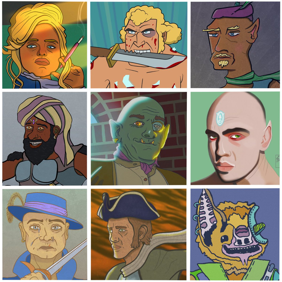 Some of the faces I have created since the pandemic started. I think I have really improved my facial expressions this year. #faceyourart #procreateart #characterdesign #under1kgang #twitterartist #IAMSomebodyArtistClub #myartstyle #dndart #brocksamson #StarWarsfanart