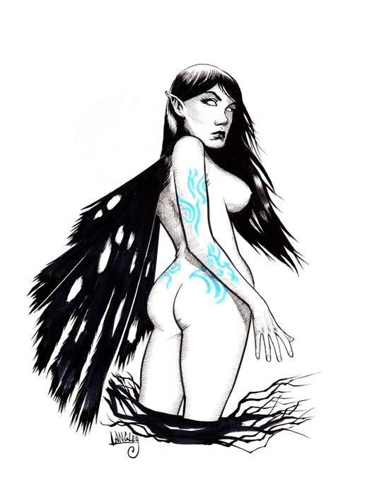#Faerie lady, created with Pentel & Sakura pens, Copic markers. See more of my work at shawnlangley.com #fantasy #fantasyart