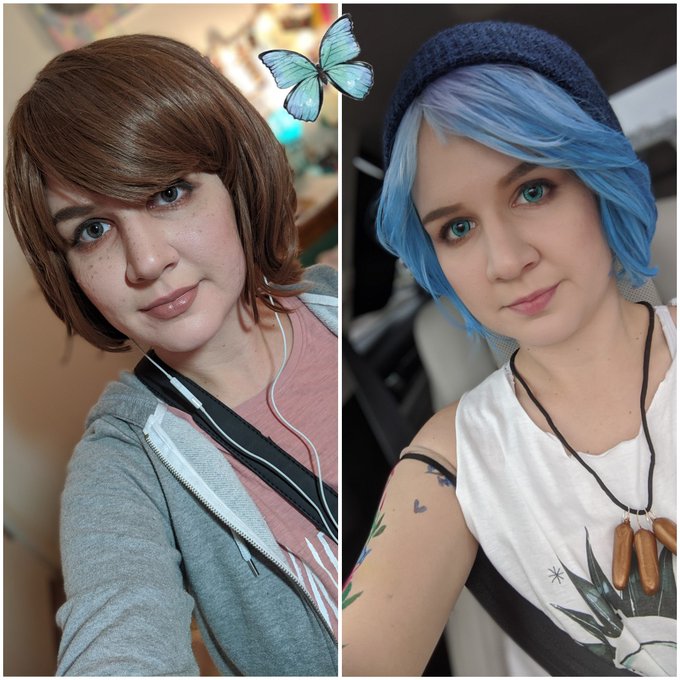 Happy 5 year anniversary #LifeIsStrange ! One of my all time fave games, so here's a fun selfie side by side of my Arcadia gals 🦋💙🌪️ . #maxcaulfield #chloeprice #cosplay