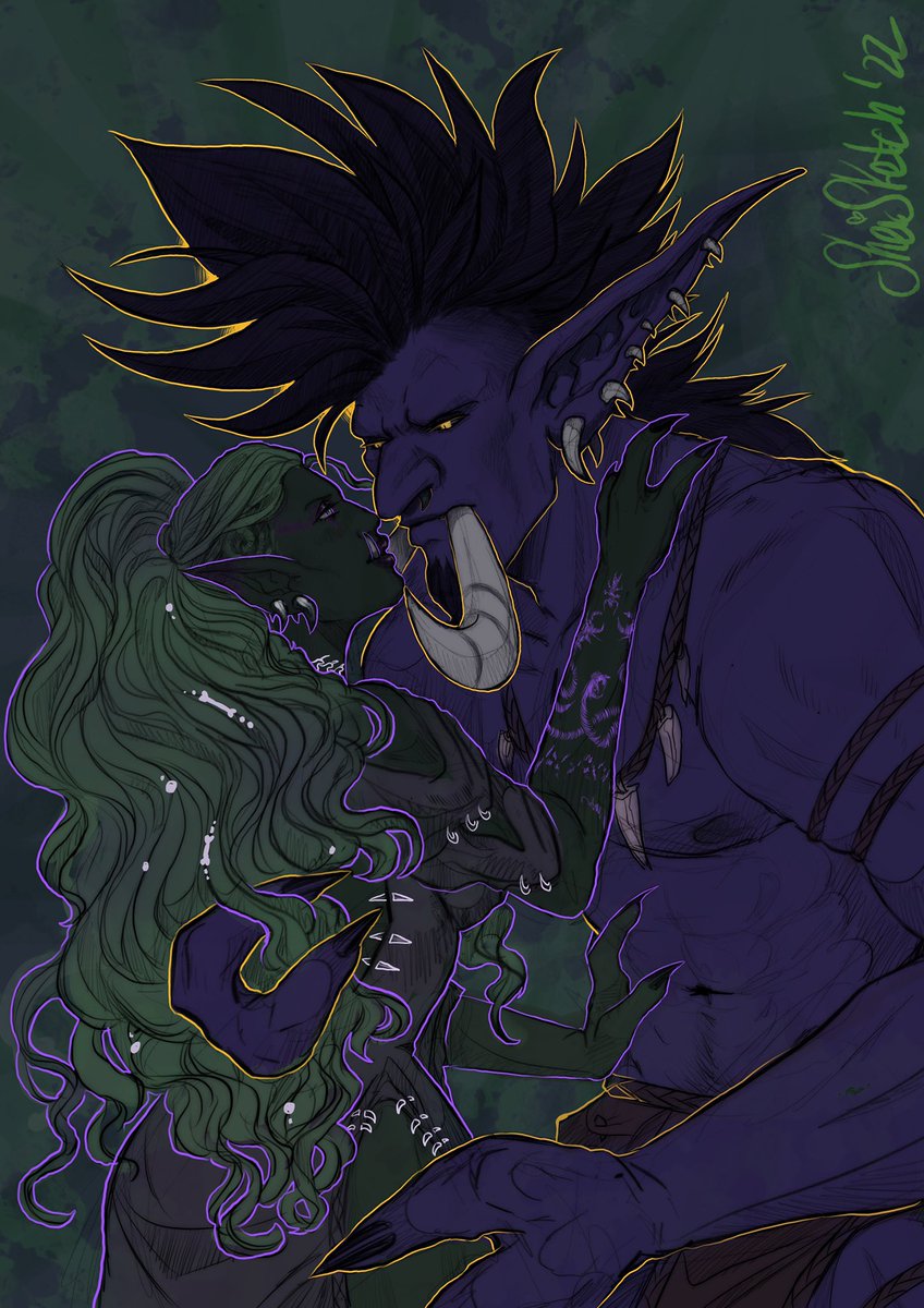 Drawing I commissioned from the fantastic @/Fusspot I love it 🥰😍🥰 Kai'var belongs to @koipiroska Senzala is mine