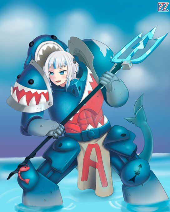 Carcharogura - the lost primarch #Warhammer40000 #warhammer40k #Gura #GawrGura #gawrt #hololiveEN #crossover #fanart