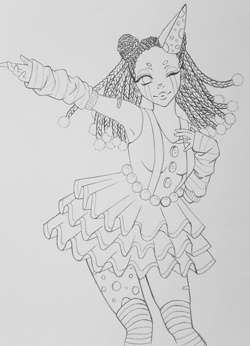 Finished day 2 (day 1 prompt) of #cutegirltober :D How'd I manage to spend like two hours searching "clowncore" on TikTok for references omg I AM coloring this one, hopefully tomorrow if I can spare the time uwu very excited about it #Inktober#cutegirltober2022#clowngirl