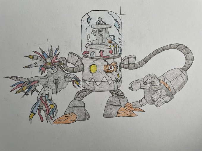 Had the hampering to draw somebody really robotic and freaky lookin', mekanorimon came right to my mind #digimon #digimonadventure #digimonfanart #mekanorimon