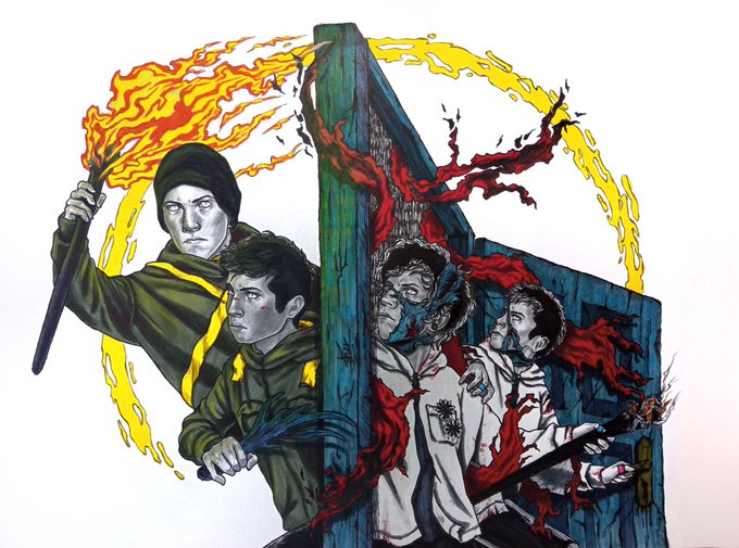 #cliquetober Day31 [ double-sided ] :: what are we here for if not to run straight through all our tormentors? :: . . . #inktober #cliqueart #twentyonepilots #artbythecliquetober