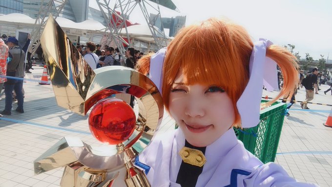 今日なのはなのー! レイジングハートと一緒だから見つけてねー!!! #エアコミケ #コスプレ