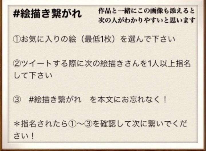 金子志津枝さん@QQQnekoQQQより、#絵描き繋がれ の、バトンをいただきました。久しぶりにお話できて嬉しかったです! 私からはお一人。林明美さん@akehaya88にお繋ぎしたいです。 よろしくお願い致します😌