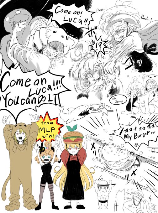 笑い死んだので好きなシーンの切り抜き絵。 優勝おめでとうございます。 またコラボしてほしい。3人とも大好き🥺 #PomuPaint #DrawMillie #drawluca