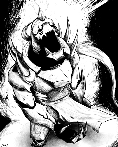 Inktober day 3! Berserk Alphonse Elric (Evangelion berserk, not berserker armor). It being on FMA day was actually a coincidence, or I would have made something cuter... but I probably still will at some point in the month. #Inktober #inktober2021 #FullmetalAlchemist
