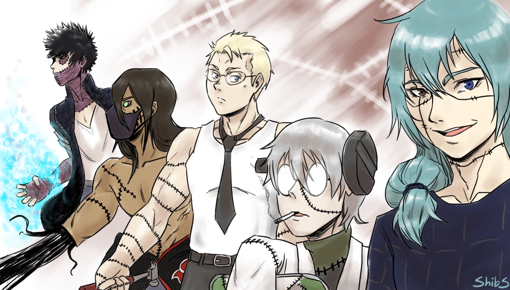 Inktober day 18! Big crossover with the patchwork gang, Mahito, Stein, Shin, Kakuzu and Dabi. #inktober2021