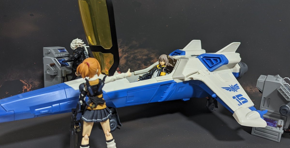 BATTLE XL-15 デザインもスタリッシュでかっこいい 背後からのエンジン姿もたまらない、そしてこの戦闘機何と脱出機能が付いてる! ただバズ以外はただ投げされになってます🤣 #figma #メガミデバイス #12分の1スケールの乗り物はいいぞ委員会