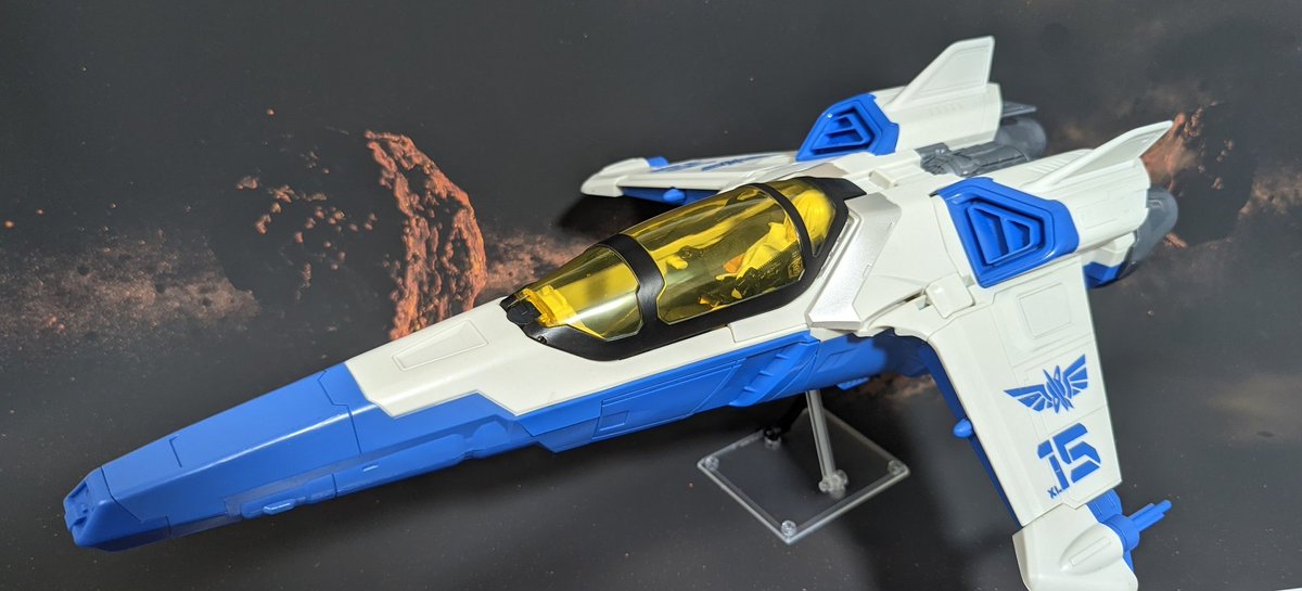 海外から持って帰ったバズライトイヤーの初代戦機XL-01 未来風のXL-15と違ってもっと伝統的な戦闘機デザインです ギミックは珍しくミサイル発射なしでハイパースペース突入失敗の装甲と燃料パージのみ さぁ無限の彼方へ! #メガミデバイス #12分の1スケールの乗り物はいいぞ委員会 #バズ·ライトイヤー